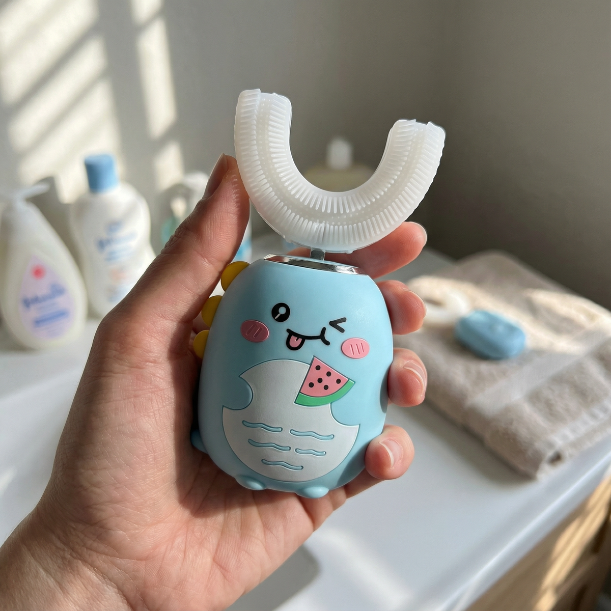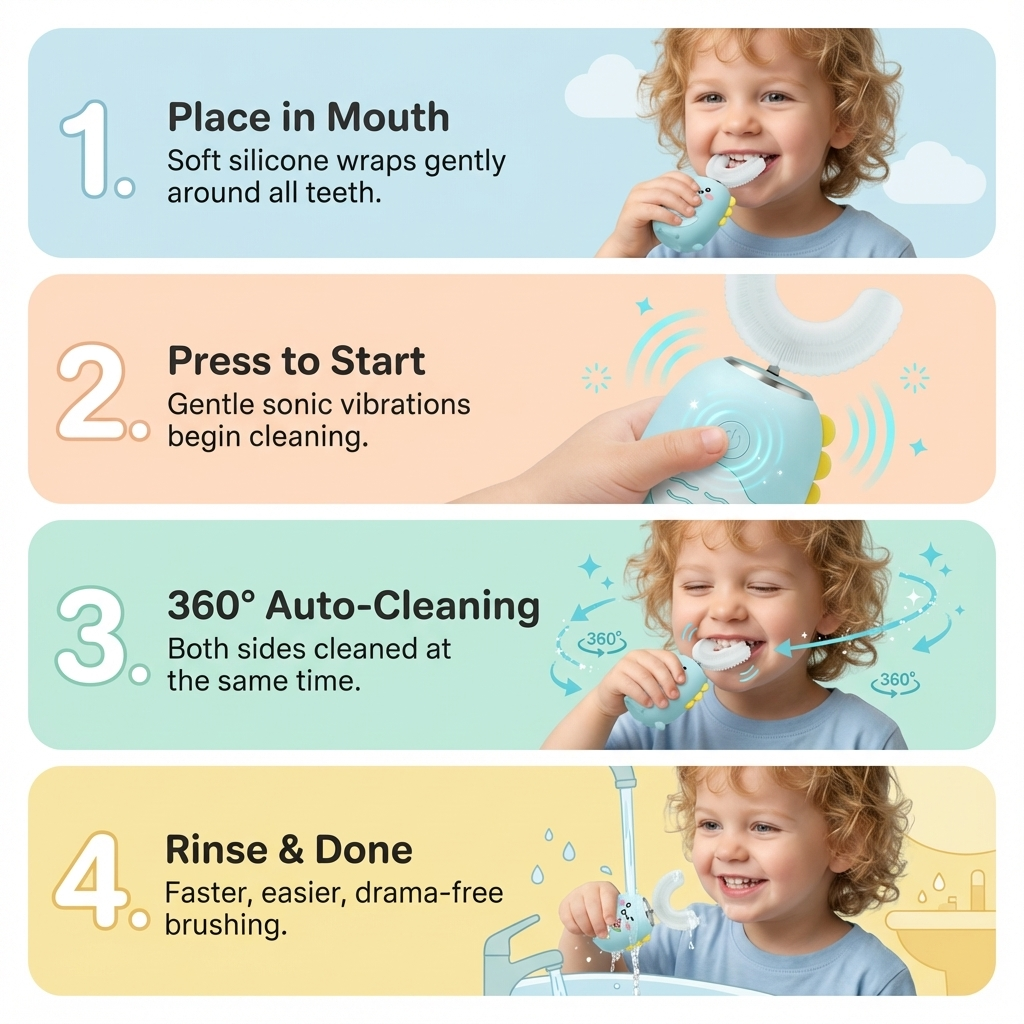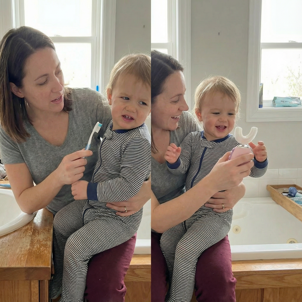 "Teeth cleaning used to be a nightly battle of wills in our house. This brush is so quick and gentle that the 'work' is done before my toddler even thinks about complaining. A massive relief for any parent dealing with brushing strikes!"
